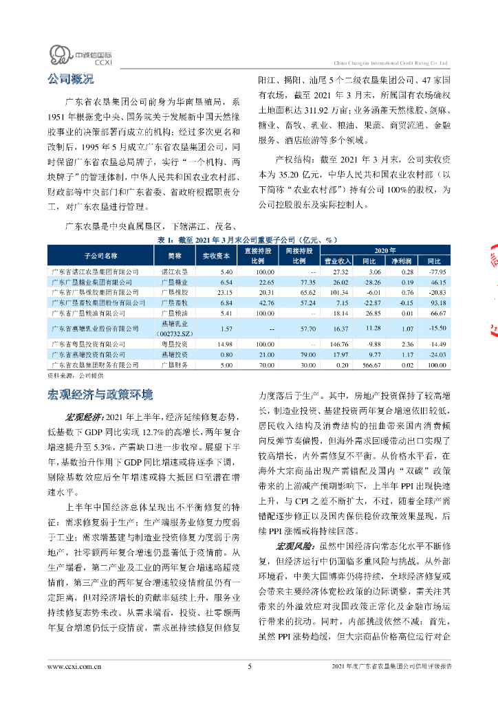 中诚信:2021年度广东省农垦集团公司主体信用评级报告.pdf