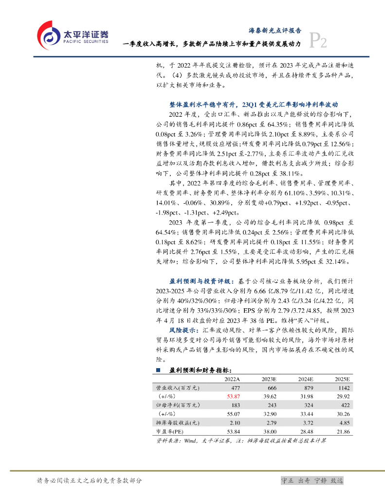 太平洋证券:海泰新光(688677)-一季度收入高增长,多款新产品陆续上市和量产提供发展动力.pdf