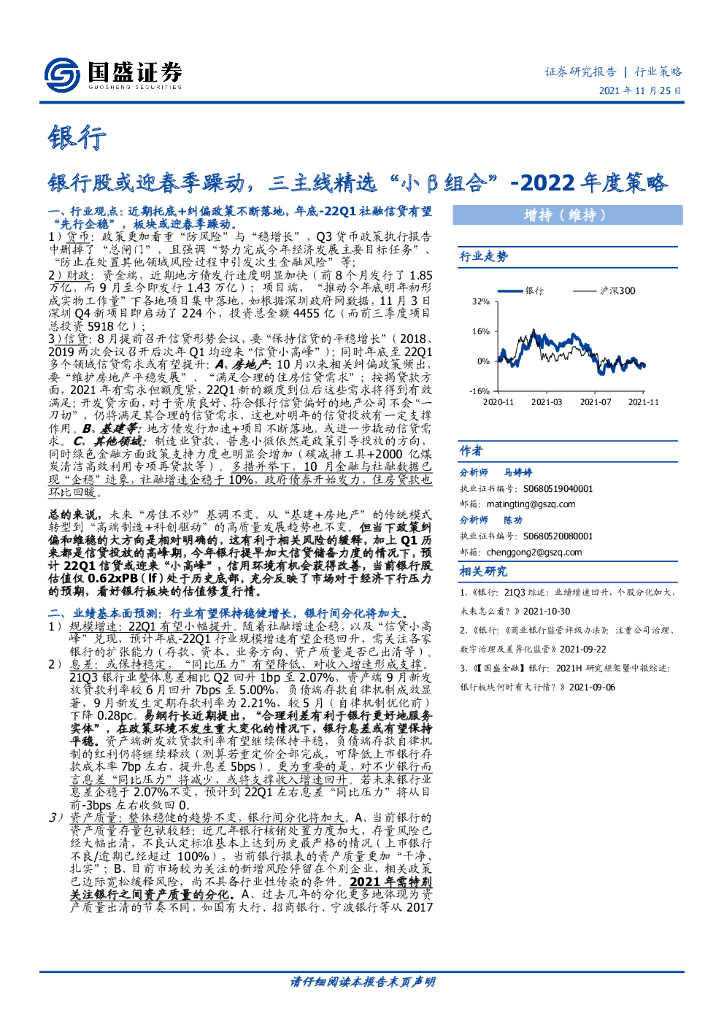 国盛证券:银行2022年度策略:银行股或迎春季躁动,三主线精选“小β组合”.pdf