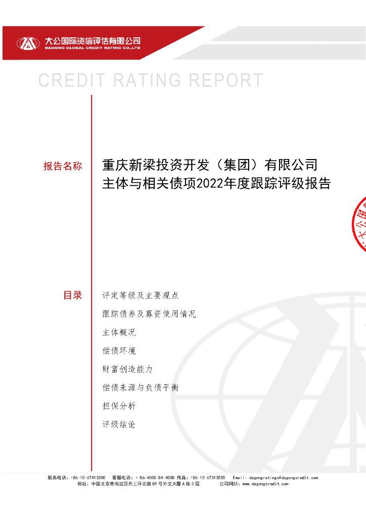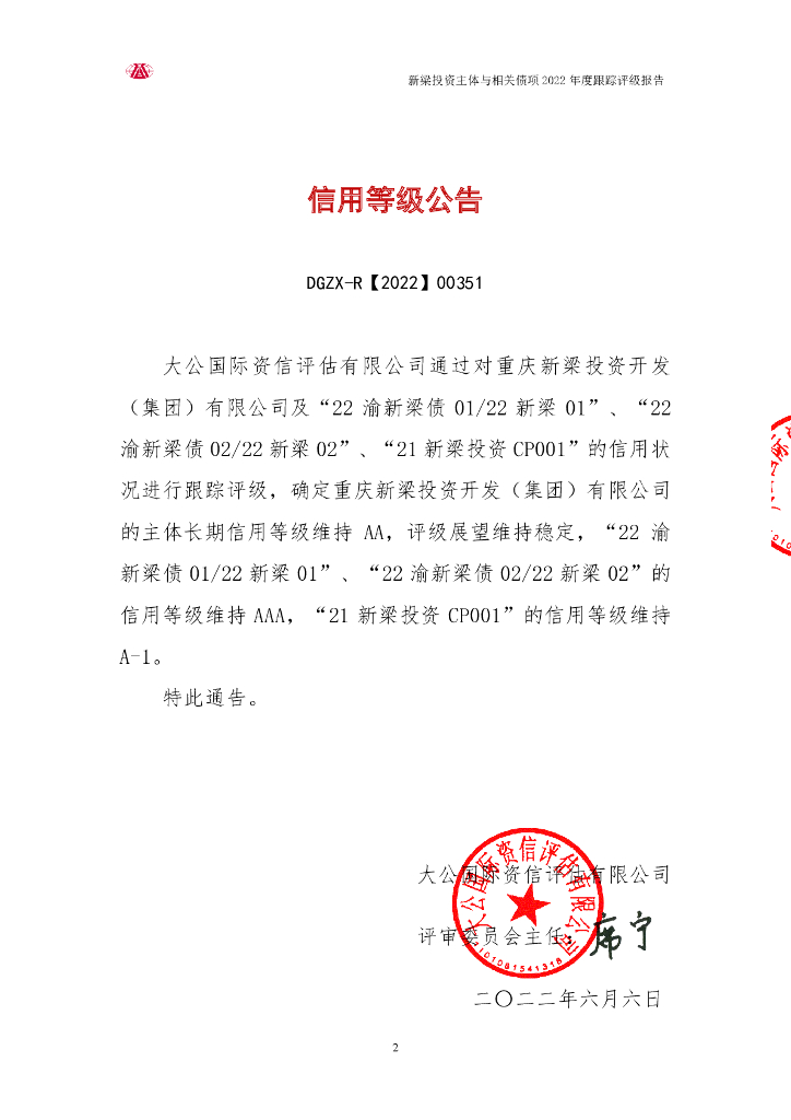 大公:重庆新梁投资开发(集团)有限公司主体与相关债项2022年度跟踪评级报告.pdf