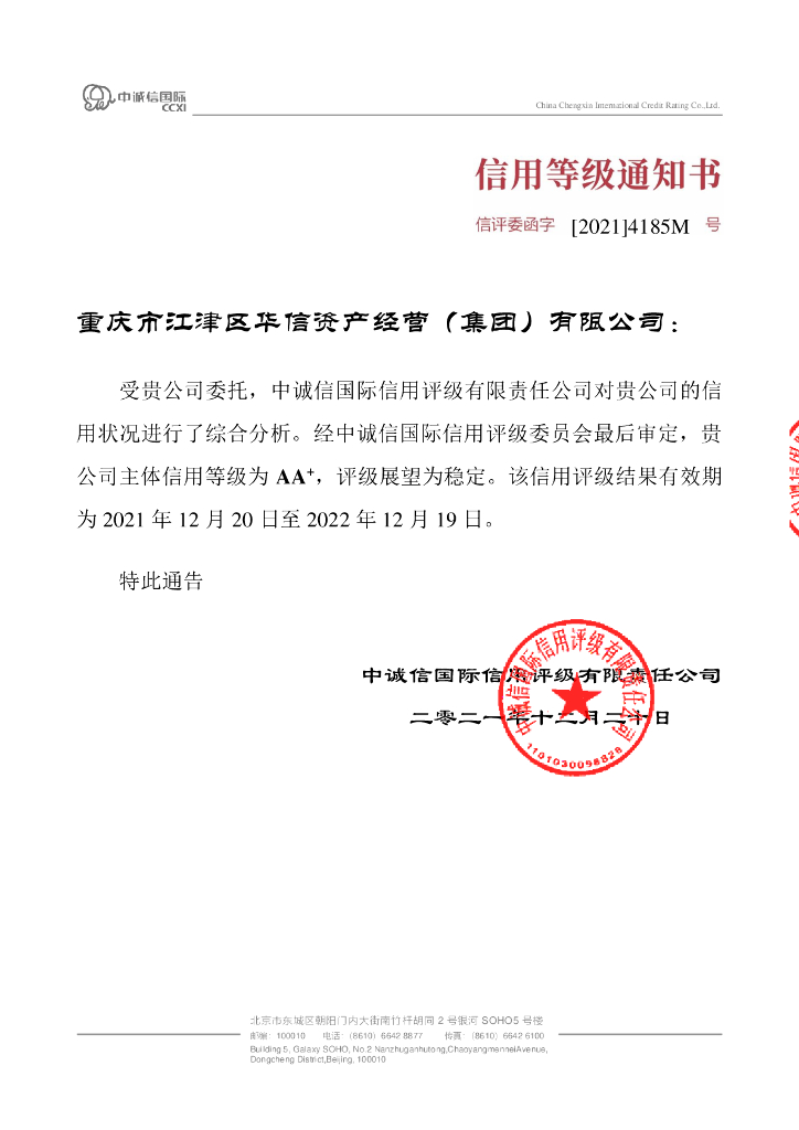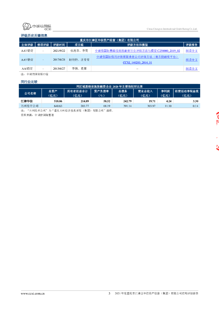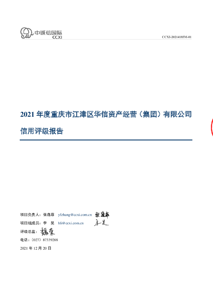 中诚信:重庆市江津区华信资产经营(集团)有限公司主体信用评级报告及跟踪评级报告.pdf