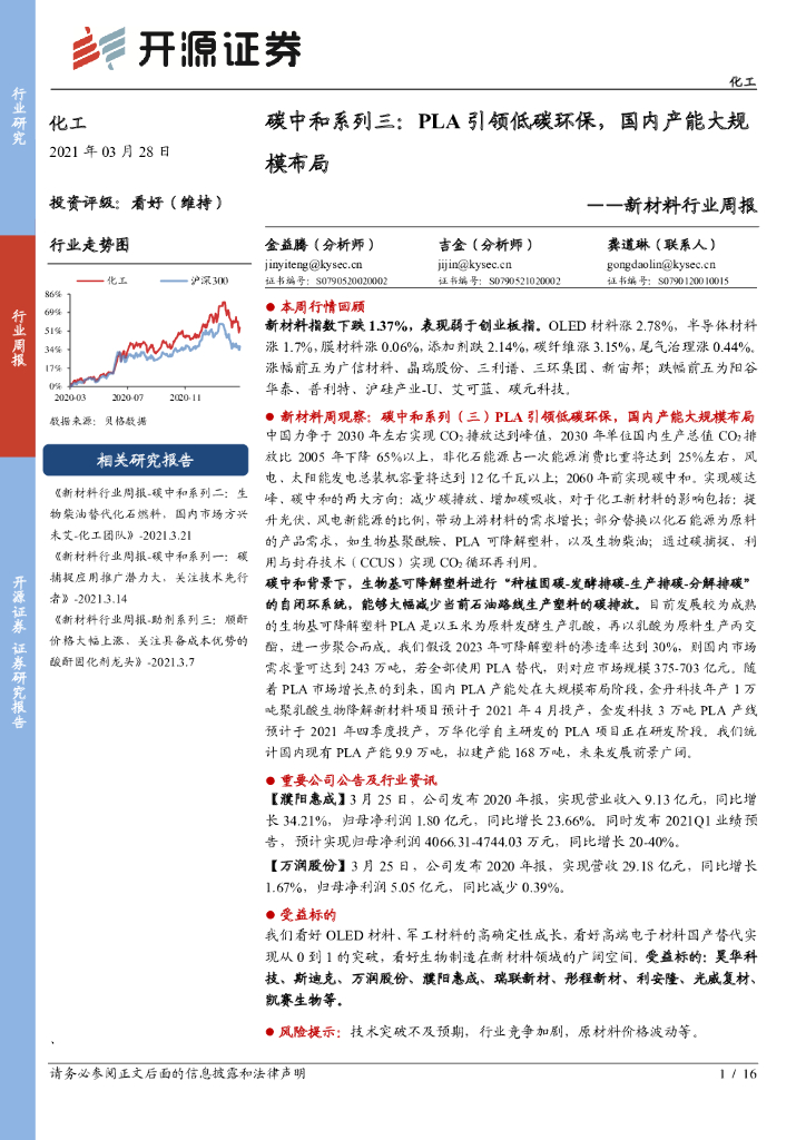 开源证券:新材料行业周报:碳中和系列三:PLA引领低碳环保,国内产能大规模布局.pdf