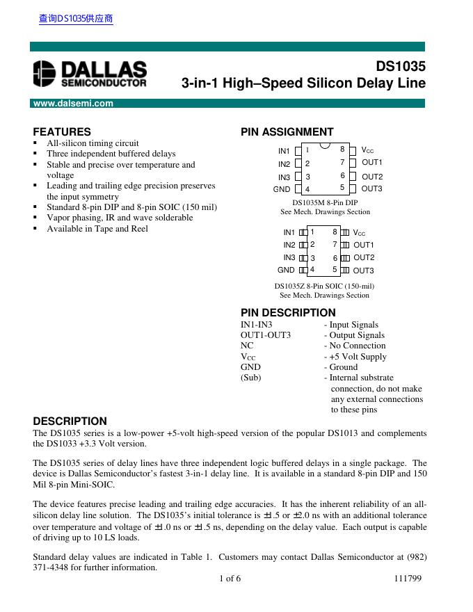 DALLAS DS1035 3-in-1 High–Speed Silicon Delay Line 技术手册.pdf