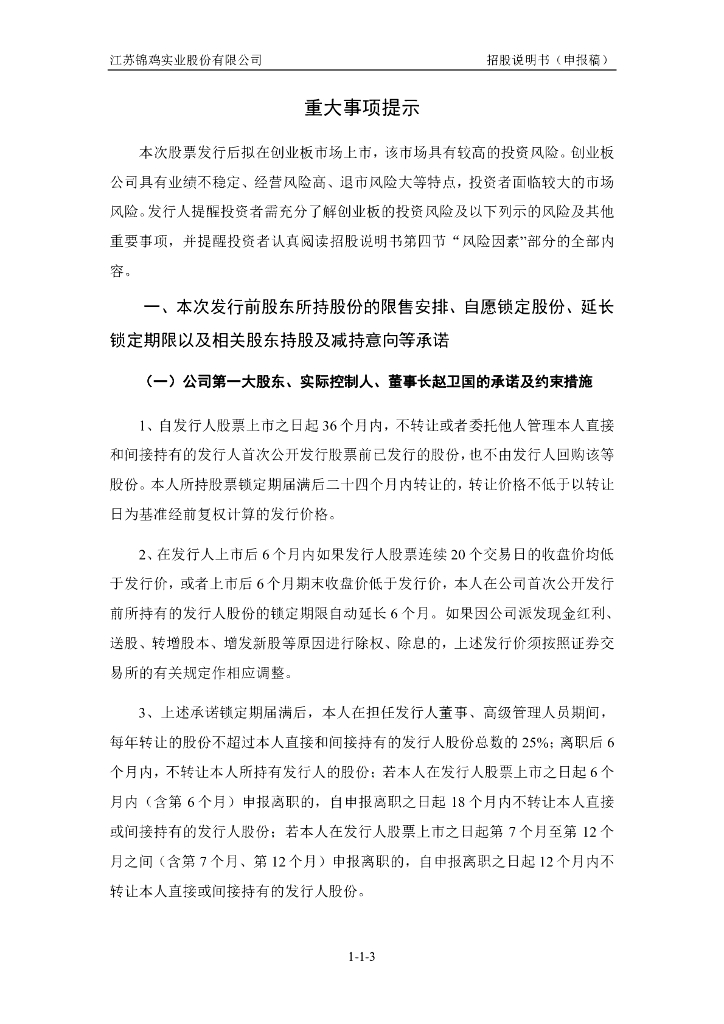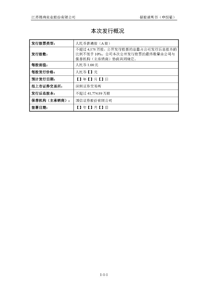 江苏锦鸡实业股份有限公司深交所创业板IPO上市招股说明书.pdf