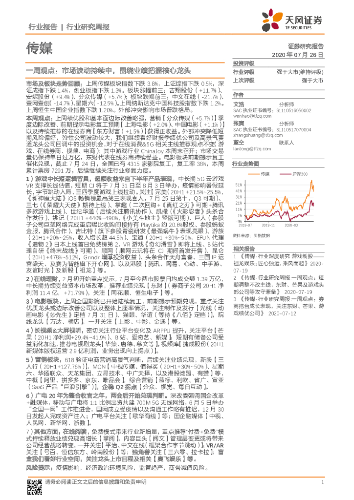 天风证券:传媒一周观点:市场波动持续中,围绕业绩把握核心龙头.pdf