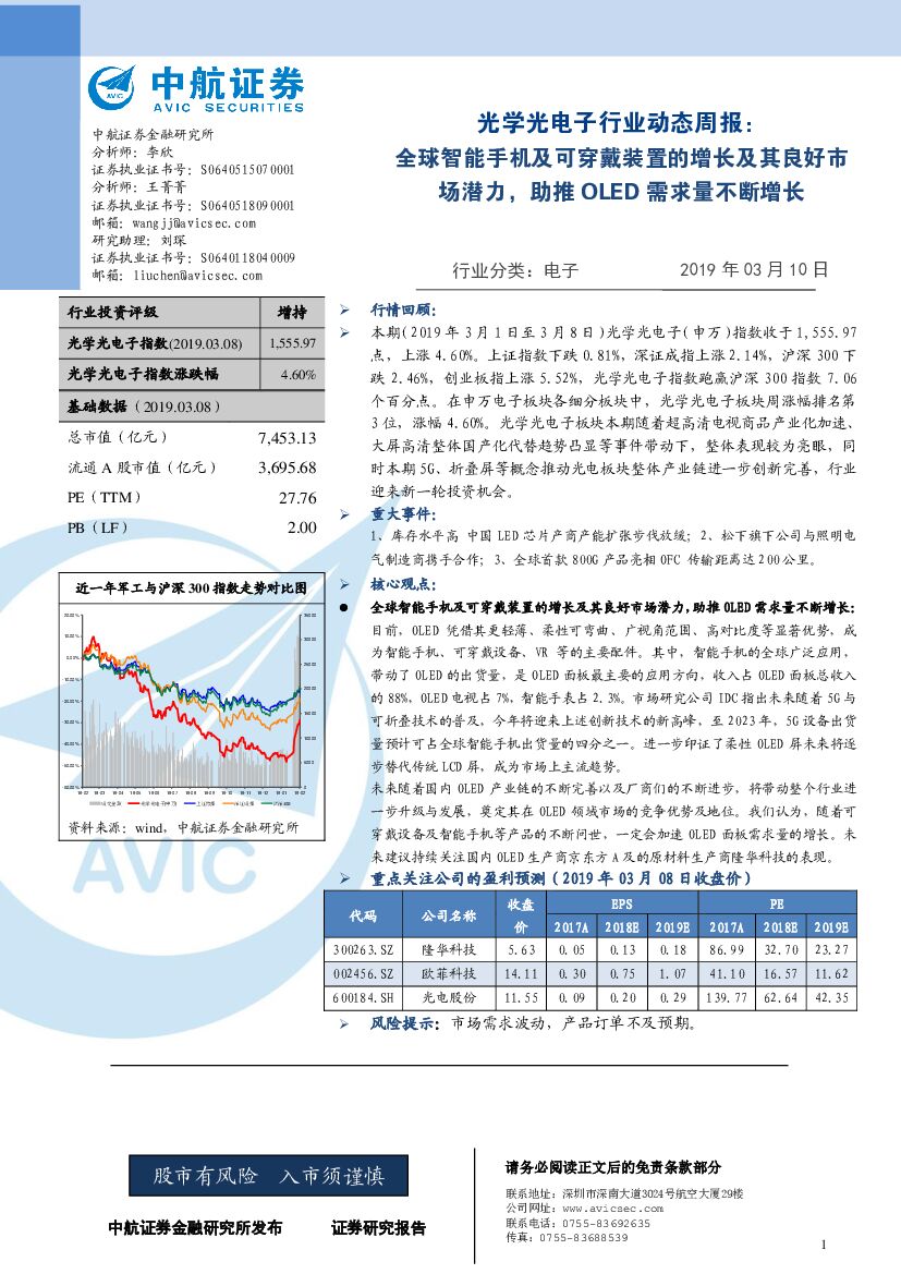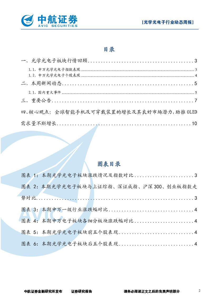 中航证券:光学光电子行业动态周报:全球智能手机及可穿戴装置的增长及其良好市场潜力,助推OLED需求量不断增长.pdf