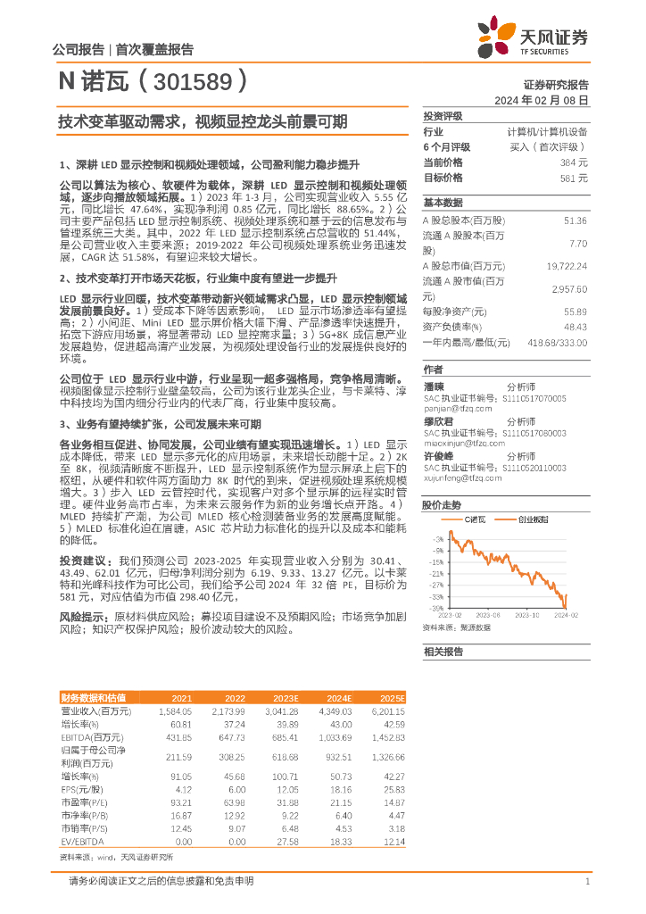 天风证券:诺瓦星云(301589)-技术变革驱动需求,视频显控龙头前景可期.pdf