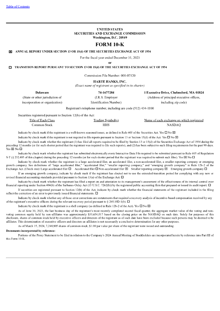 Harte-Hanks Inc.(HHS)2023财年年度报告(英文版).pdf