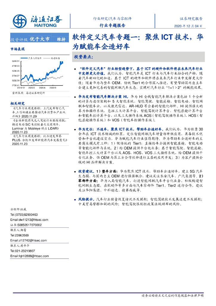 海通证券:汽车与零配件行业软件定义汽车专题一:聚焦ICT技术,华为赋能车企造好车-海通证券-26页.pdf