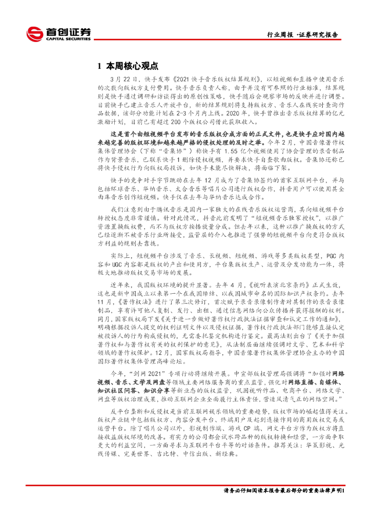 首创证券:传媒行业周报:快手将按次支付音乐版权,关注版权生态改善.pdf