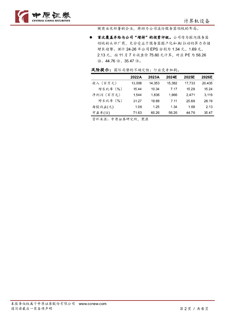 中原证券:中科曙光(603019)-3季报点评:毛利维持增长,持续受益国产化和AI化的发展趋势.pdf