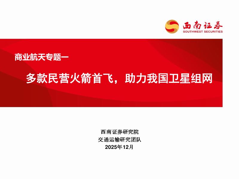 西南证券:商业航天专题一:多款民营火箭首飞,助力我国卫星组网.pdf