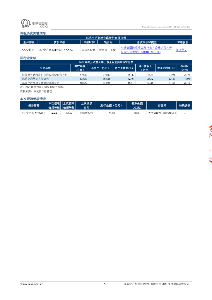 中诚信:江苏宁沪高速公路股份有限公司2021年度跟踪评级报告.pdf