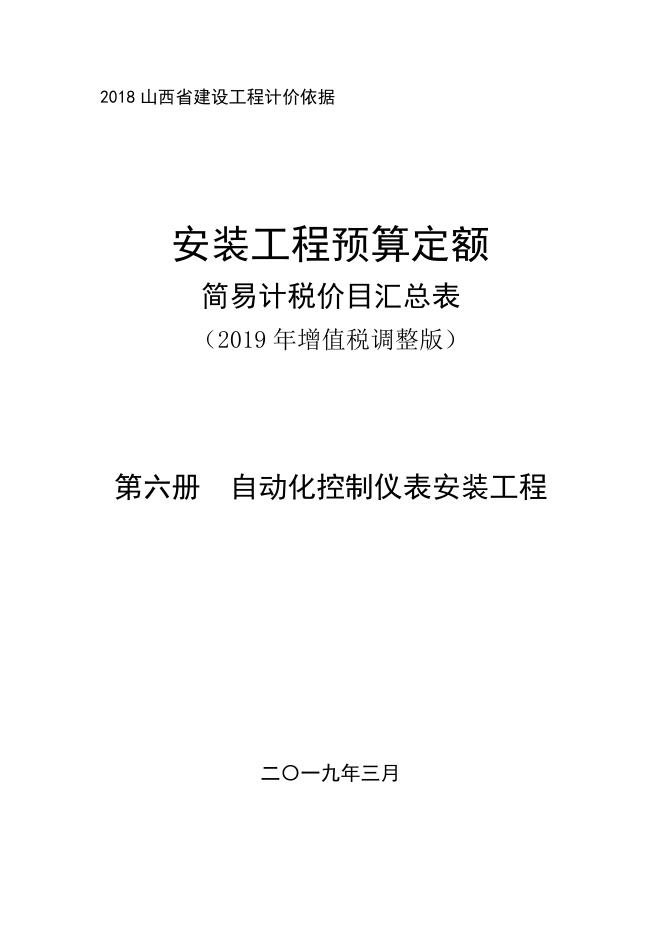 山西省安装工程预算定额 简易计税价目汇总表(2019年增值税调整版)第六册 自动化控制仪表安装工程.pdf