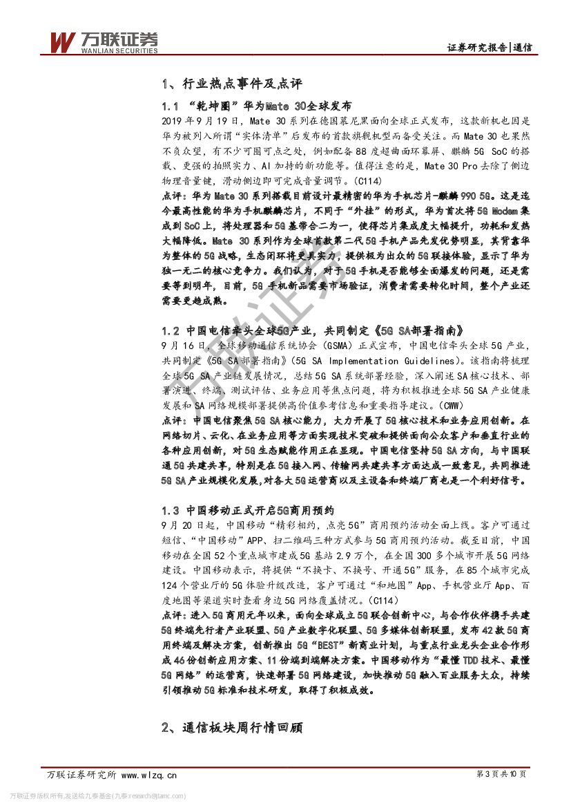 万联证券:通信行业周观点:运营商和设备商持续推进5G商用.pdf