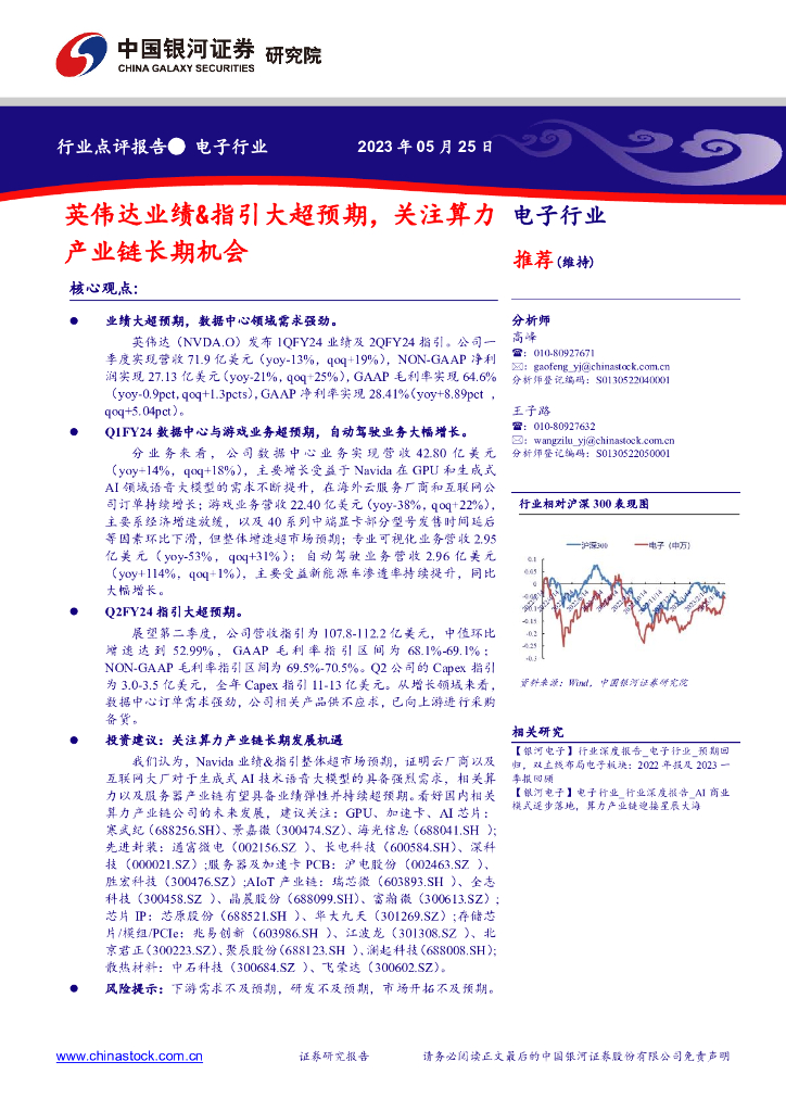 中国银河:电子行业:英伟达业绩&指引大超预期,关注算力产业链长期机会.pdf