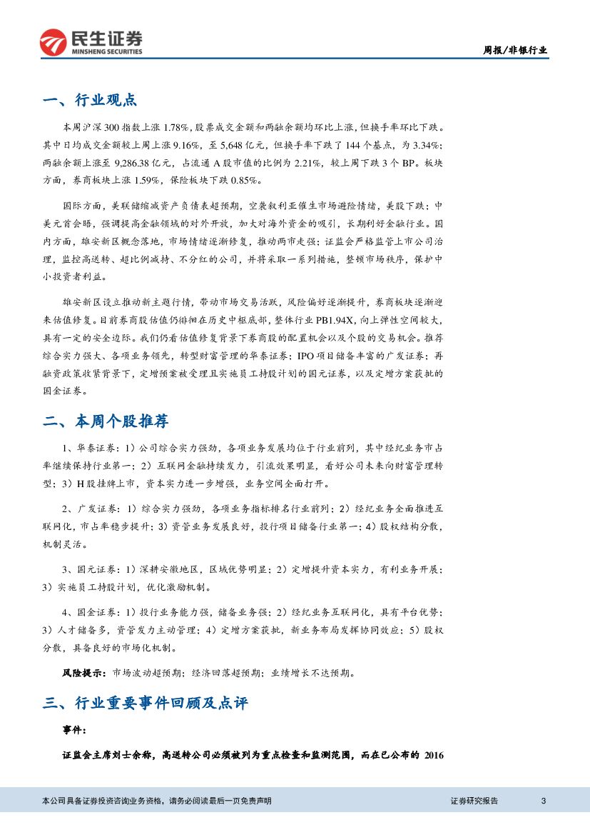 民生证券:非银行业周报:雄安概念提振市场情绪,券商估值有望修复.pdf