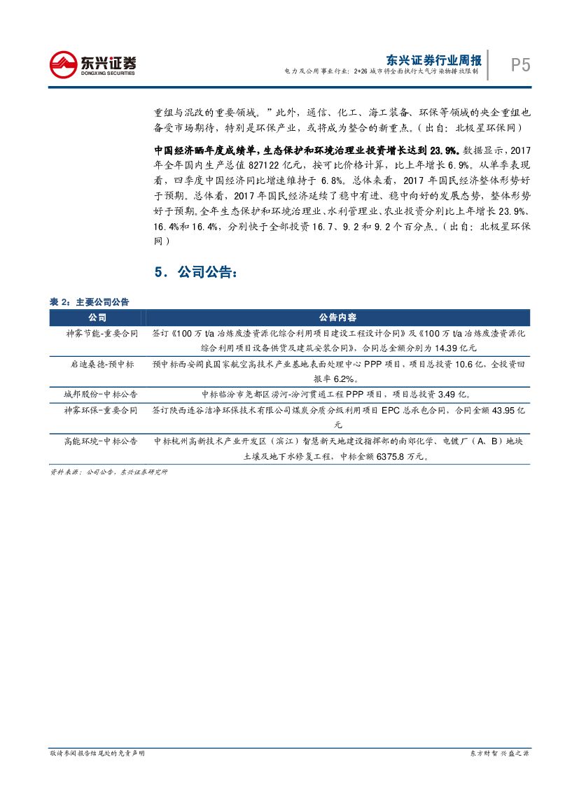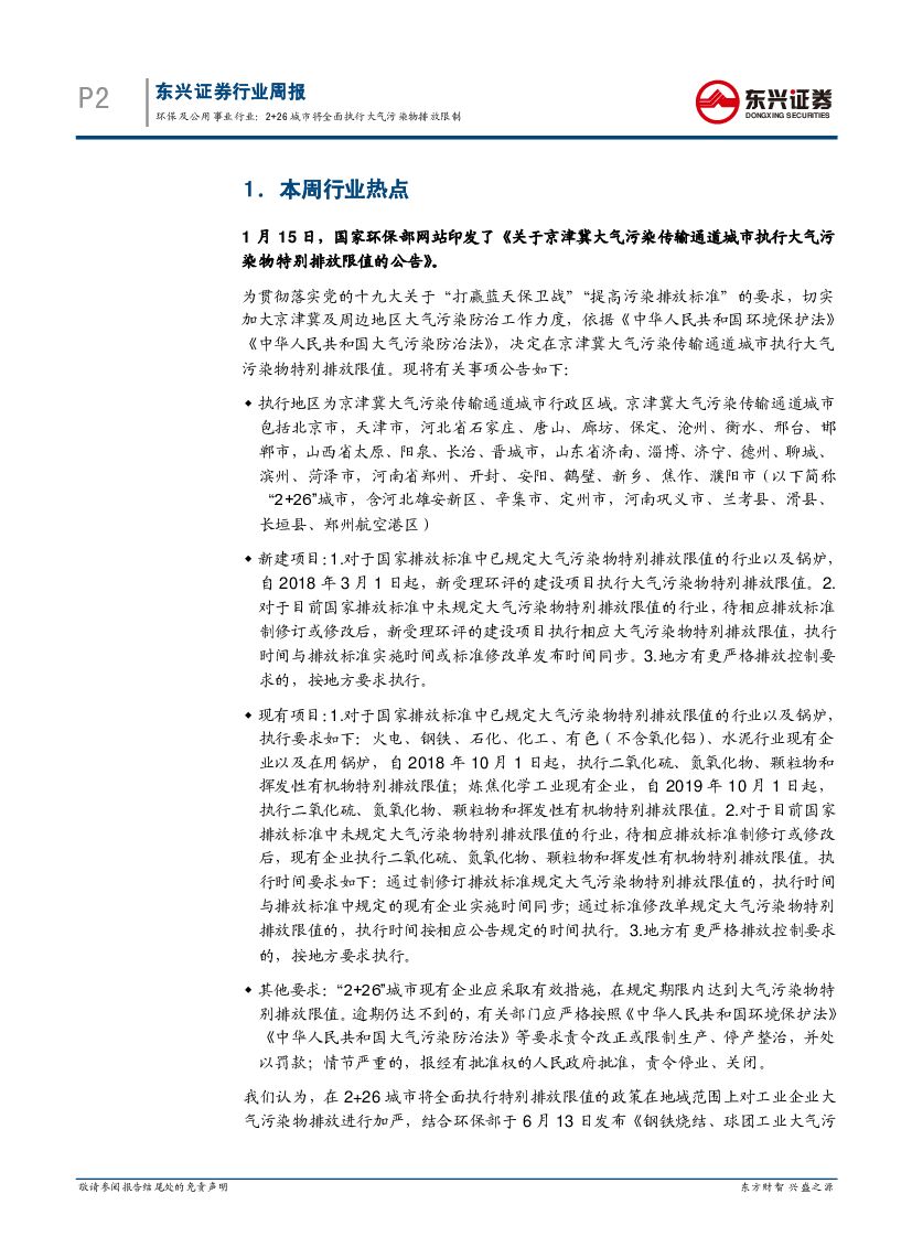 东兴证券:环保及公用事业行业周报:2+26城市将全面执行大气污染物排放限制.pdf