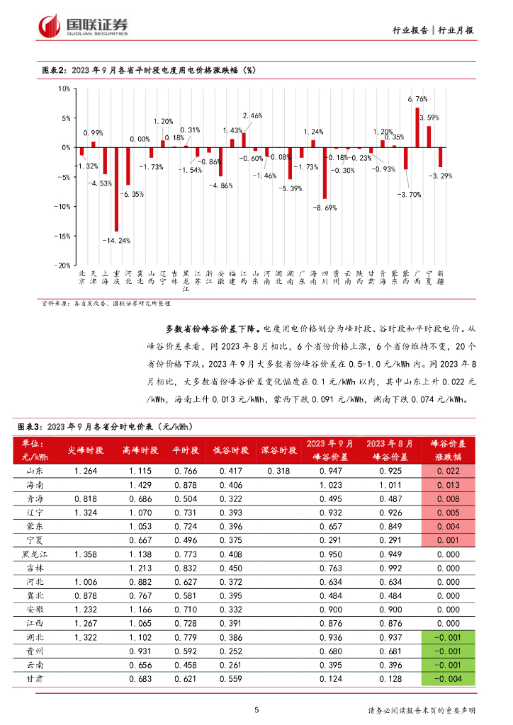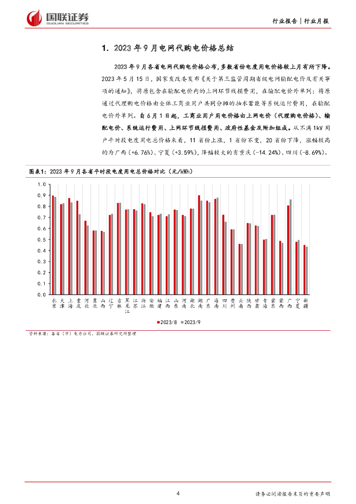 国联证券:公用事业行业月报:9月代购电价格有所下降,多省峰谷价差下降.pdf