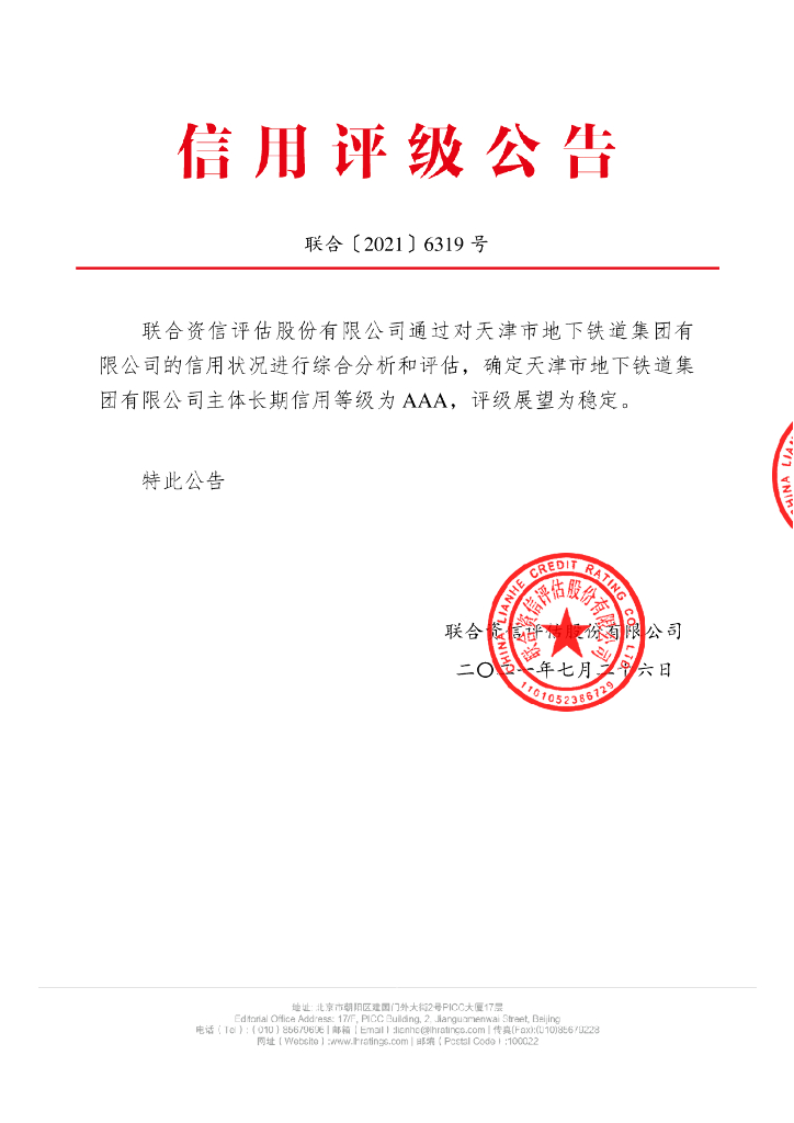 联合资信:天津市地下铁道集团有限公司主体长期信用评级报告.pdf