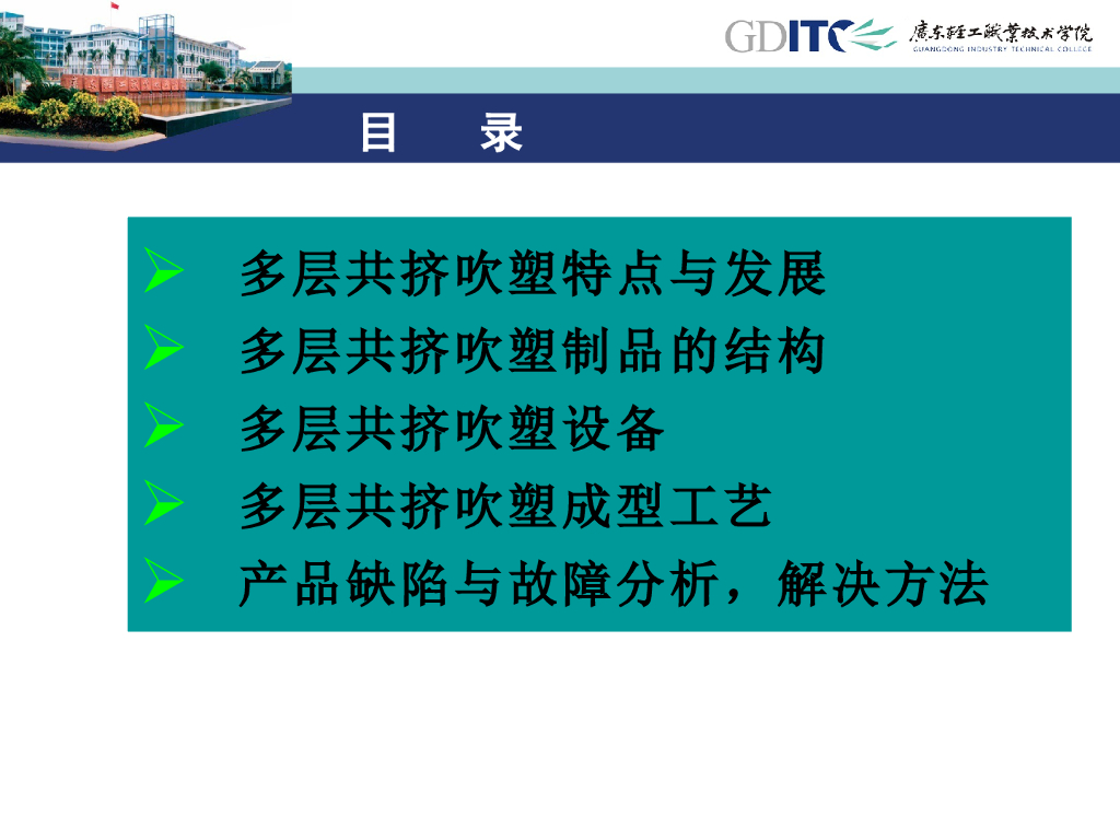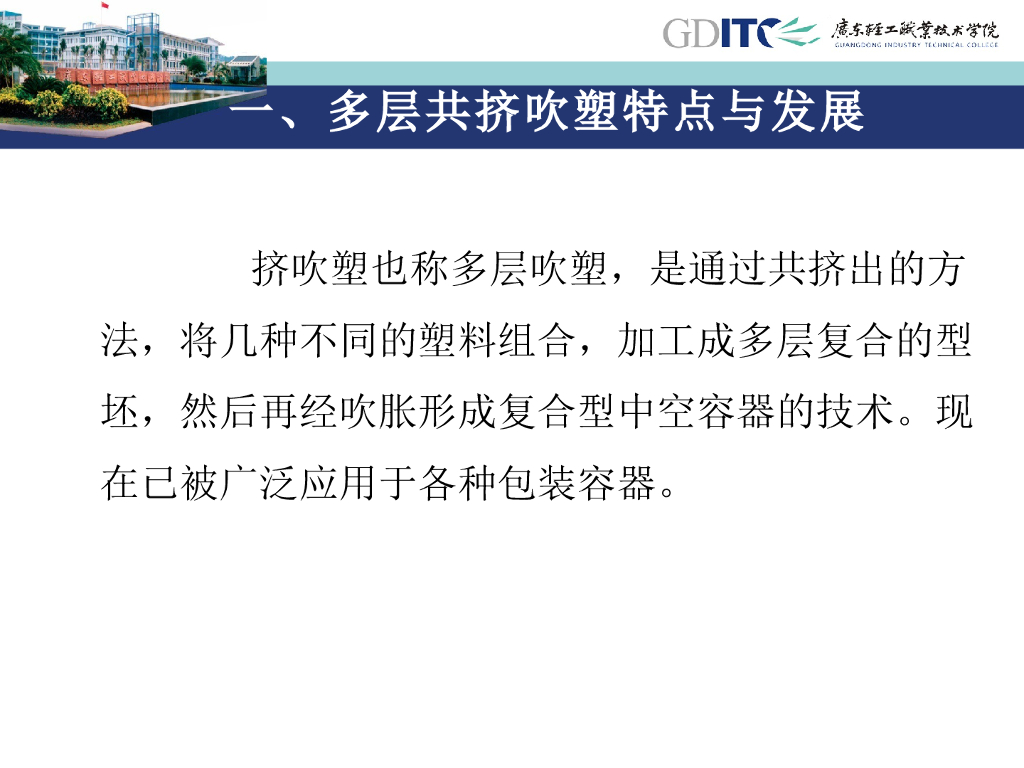 《塑料挤出成型》演示文稿-项目5:中空挤出吹塑成型 单元8 多层共挤吹塑复合制品生产技术.pdf