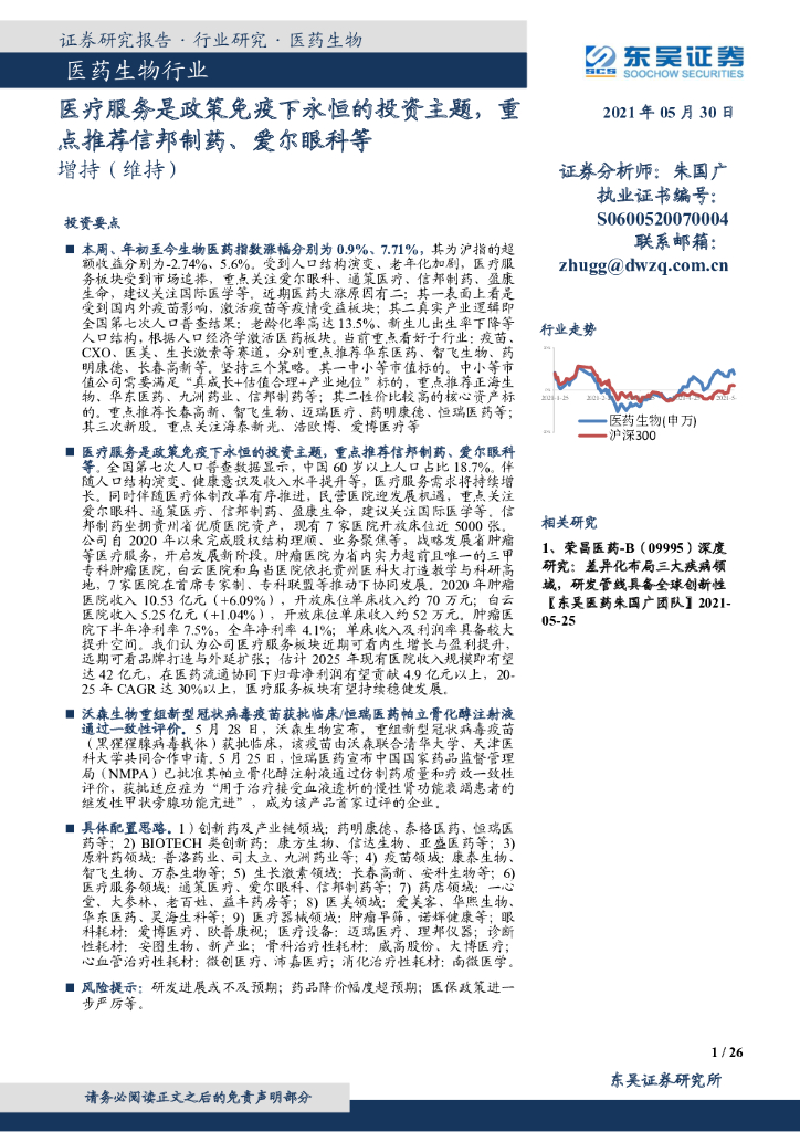 东吴证券:医药生物行业跟踪周报:医疗服务是政策免疫下永恒的投资主题,重点推荐信邦制药、爱尔眼科等.pdf