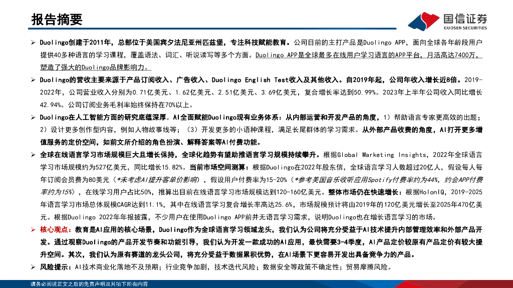 国信证券:互联网行业海外垂类AI应用专题(1):Duolingo-人工智能推动商业飞轮多维优势打造在线教育龙头.pdf