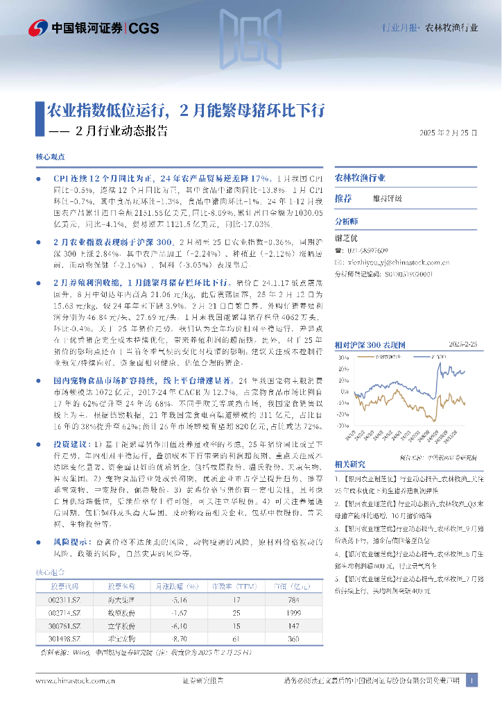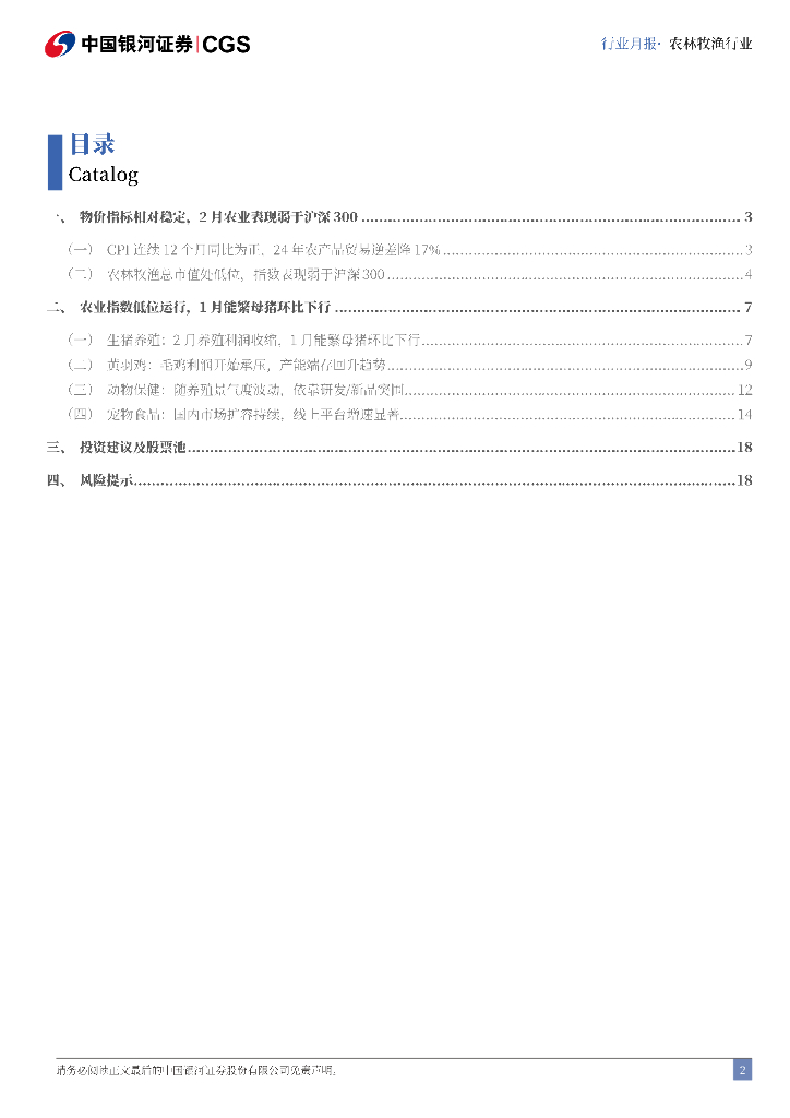 中国银河:农林牧渔行业行业月报:农业指数低位运行,2月能繁母猪环比下行.pdf