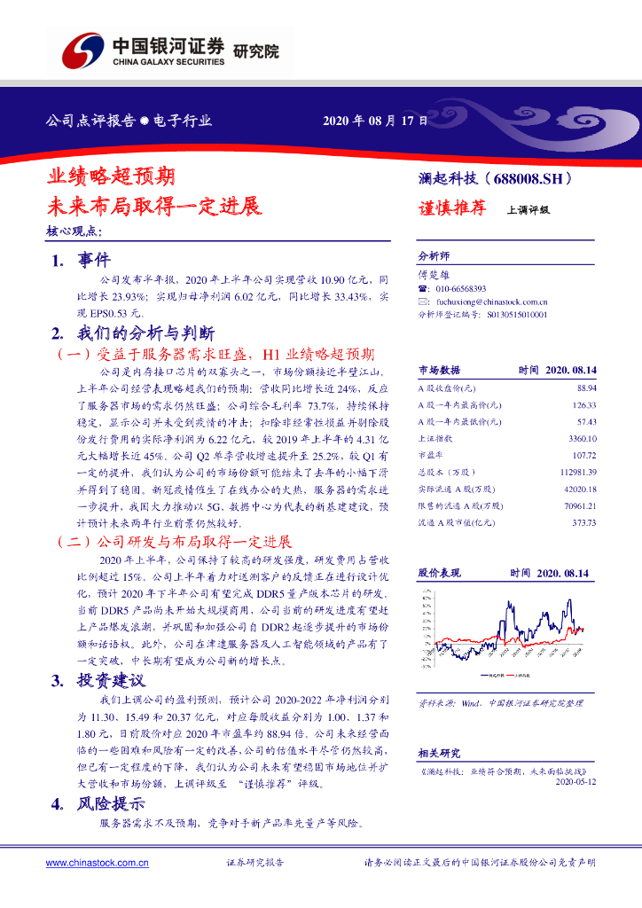 中国银河:澜起科技(688008)-业绩略超预期 未来布局取得一定进展.pdf