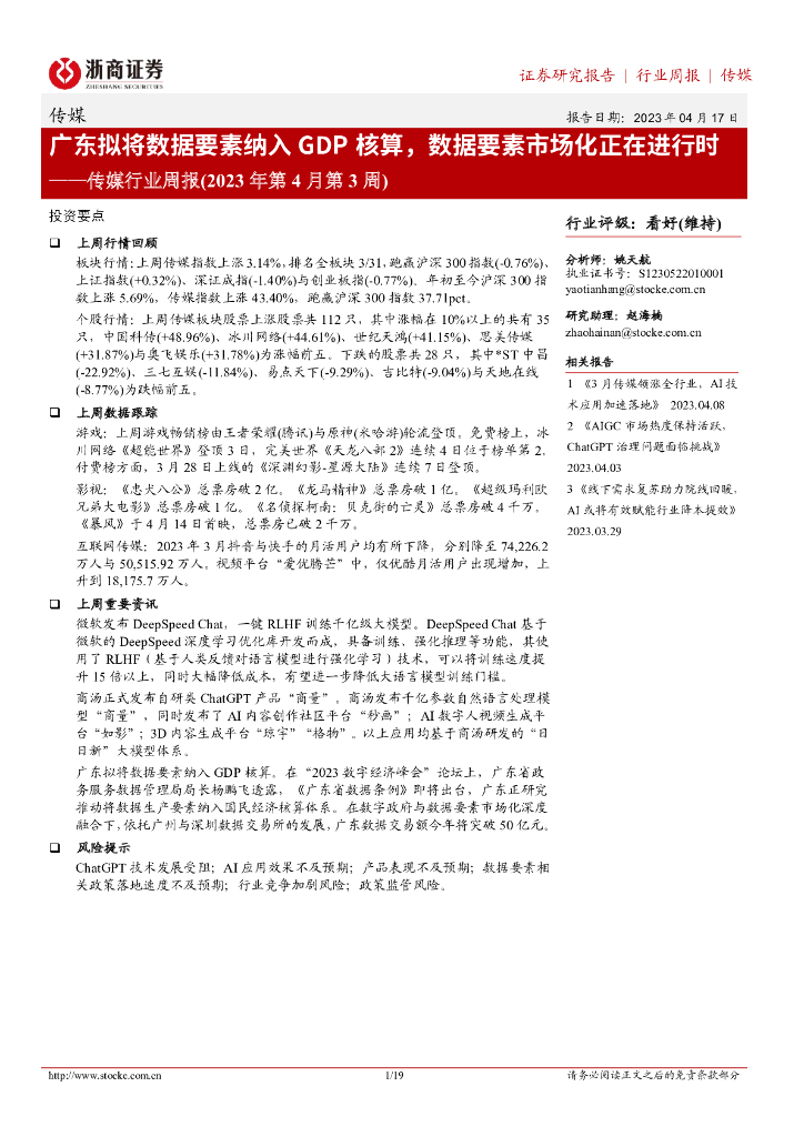 浙商证券:传媒行业周报(2023年第4月第3周):广东拟将数据要素纳入GDP核算,数据要素市场化正在进行时.pdf
