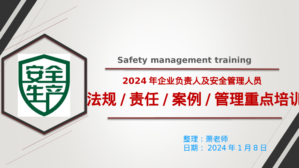 企业负责人及安全管理人员专题培训(123页).ppt