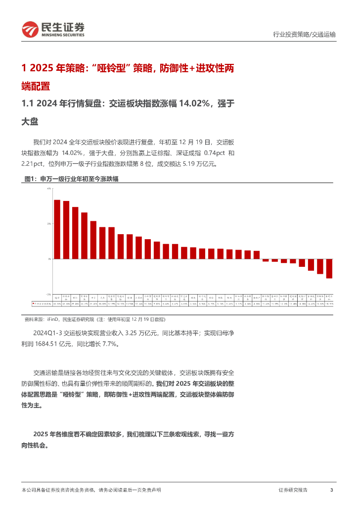 民生证券:交运行业2025年度投资策略:“哑铃型”策略,攻守兼备,寻找交运的投资线索.pdf