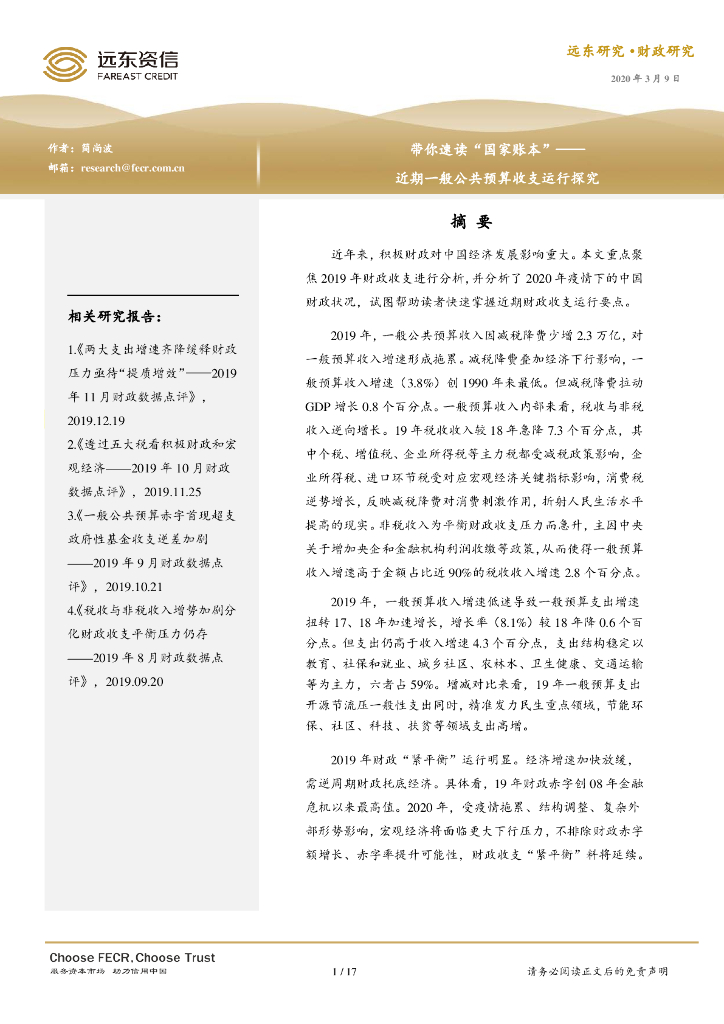 远东资信:带你速读“国家账本”——近期一般公共预算收支运行探究.pdf