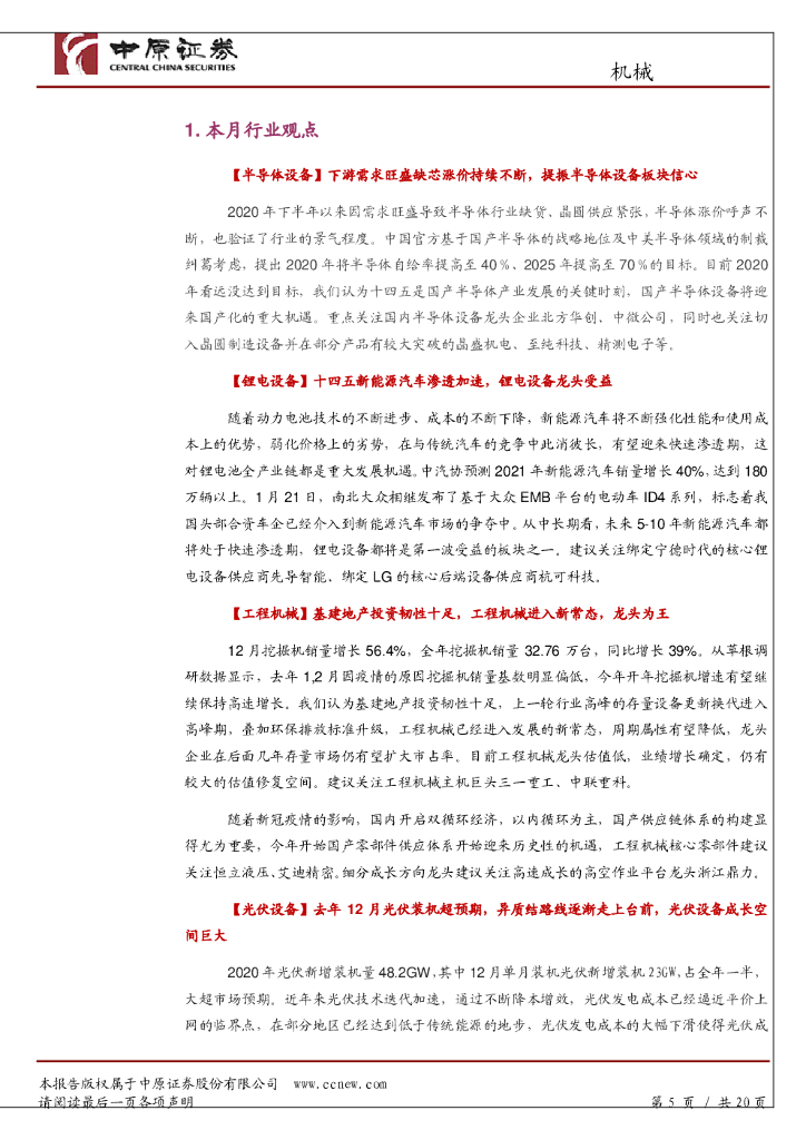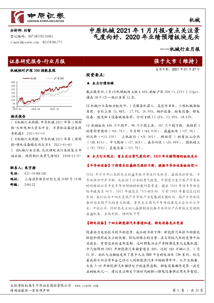 中原证券:中原机械2021年1月月报:重点关注景气度向好、2020年业绩预增板块龙头.pdf