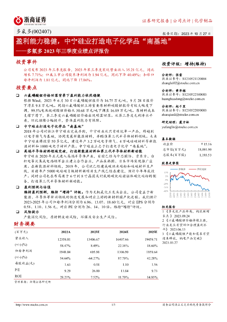浙商证券:多氟多(002407)-盈利能力稳健,中宁硅业打造电子化学品“南基地”.pdf