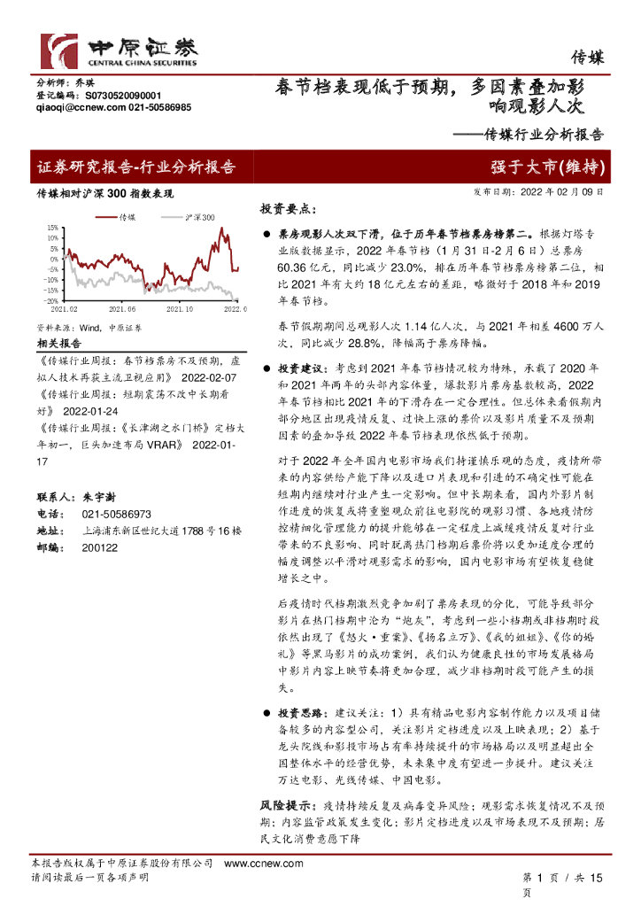 中原证券:传媒行业分析报告:春节档表现低于预期,多因素叠加影响观影人次.pdf