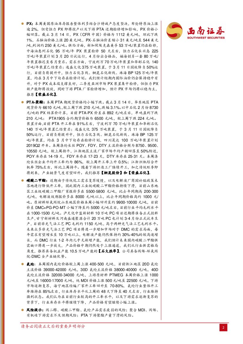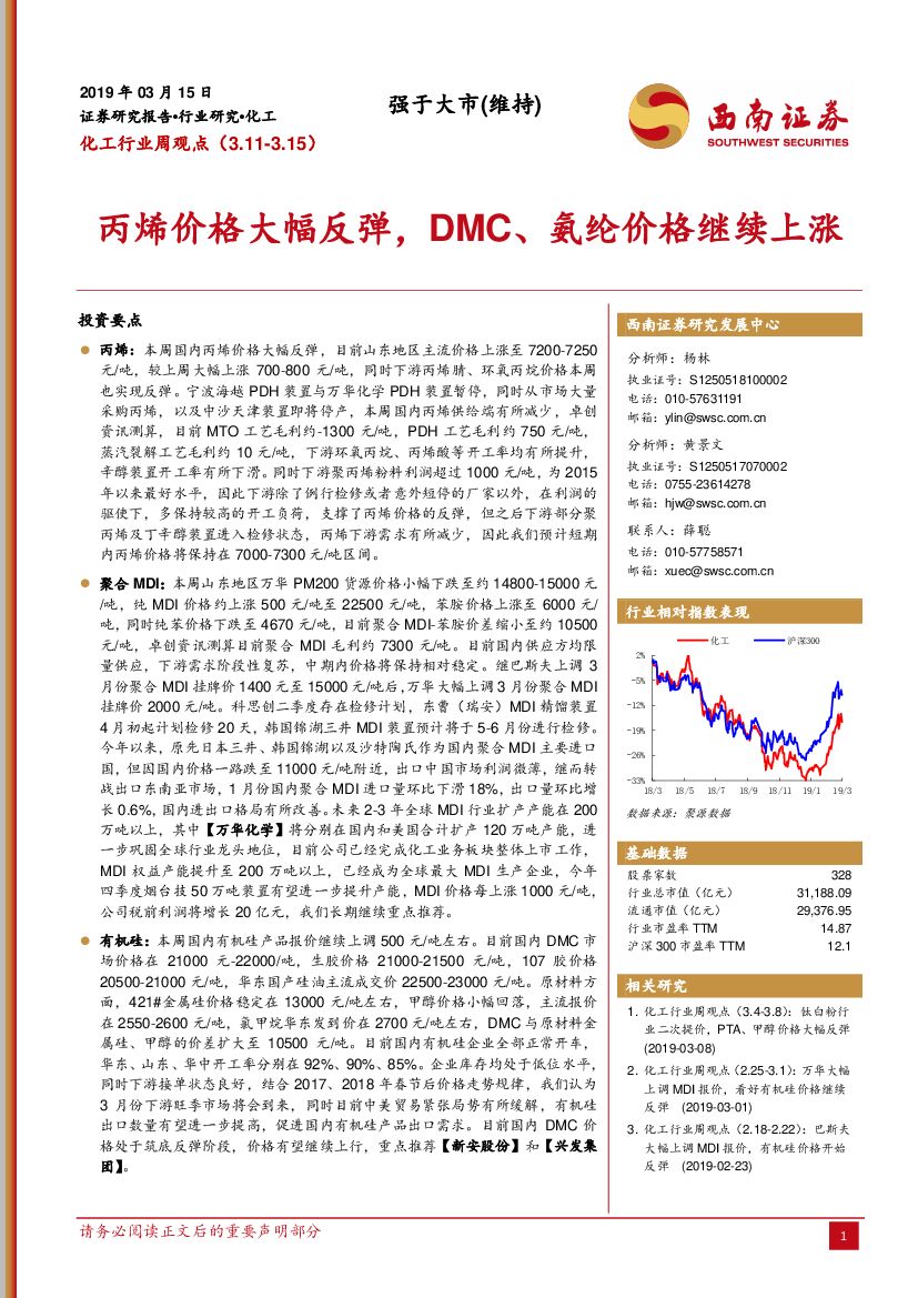 西南证券:化工行业周观点:丙烯价格大幅反弹,DMC、氨纶价格继续上涨.pdf