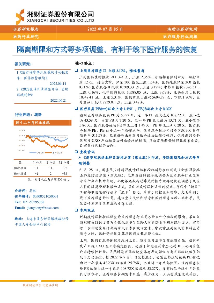 湘财证券:医疗服务行业周报:隔离期限和方式等多项调整,有利于线下医疗服务的恢复.pdf