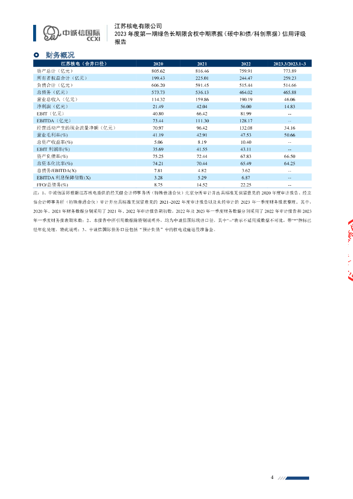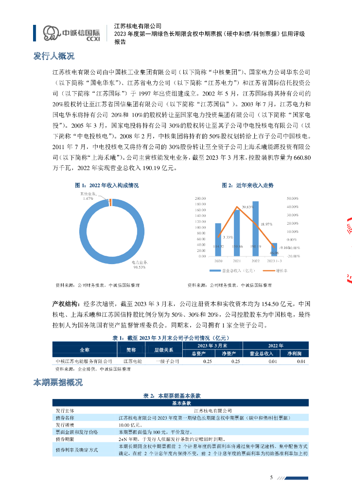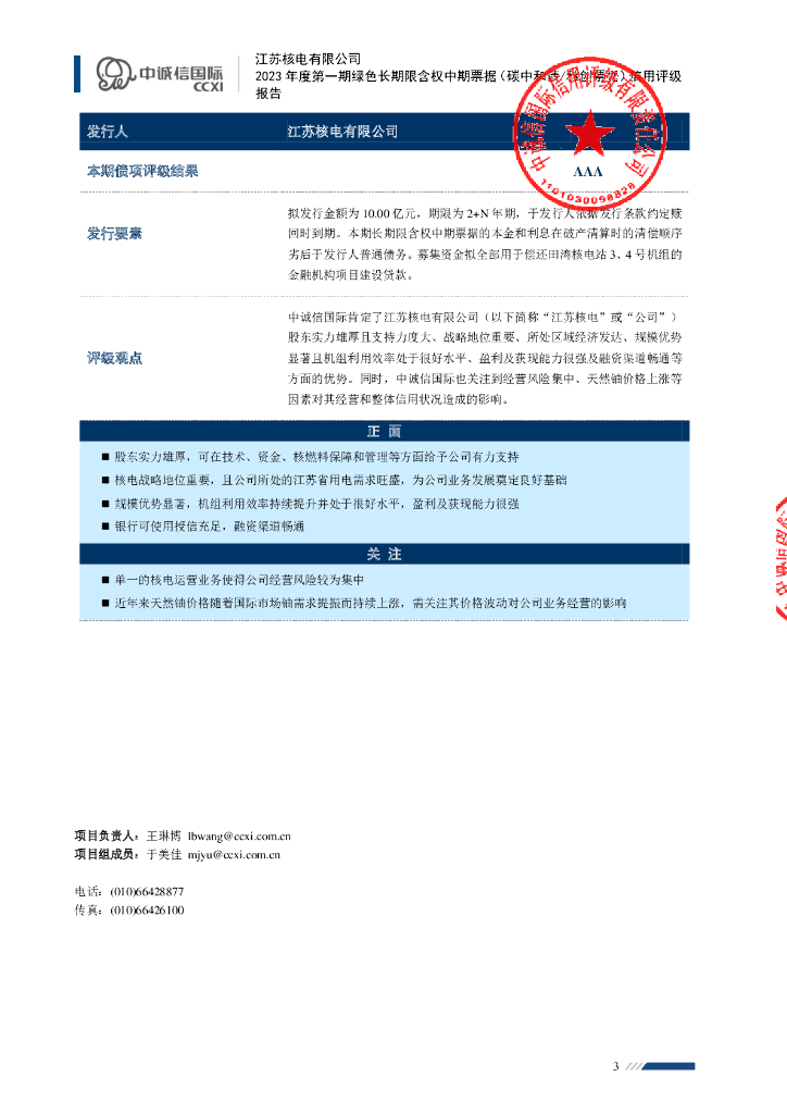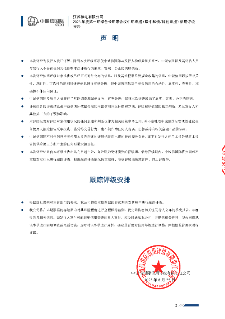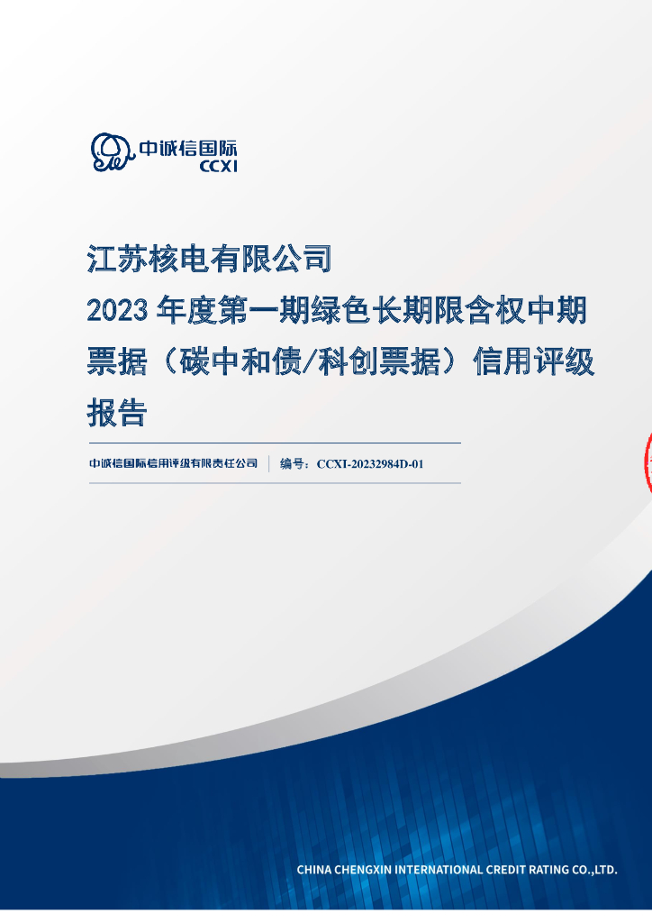 中诚信:江苏核电有限公司2023年度第一期绿色长期限含权中期票据(碳中和债、科创票据)信用评级报告.pdf