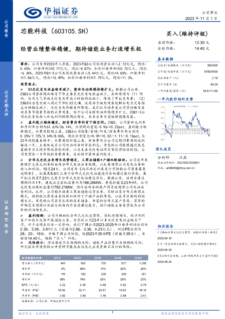 华福证券:芯能科技(603105)-经营业绩整体稳健,期待储能业务打造增长极.pdf
