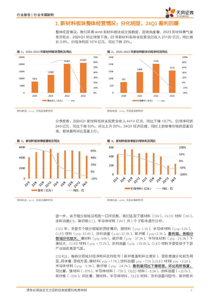 天风证券:非金属新材料行业专题研究:新材料23年报及24Q1综述.pdf