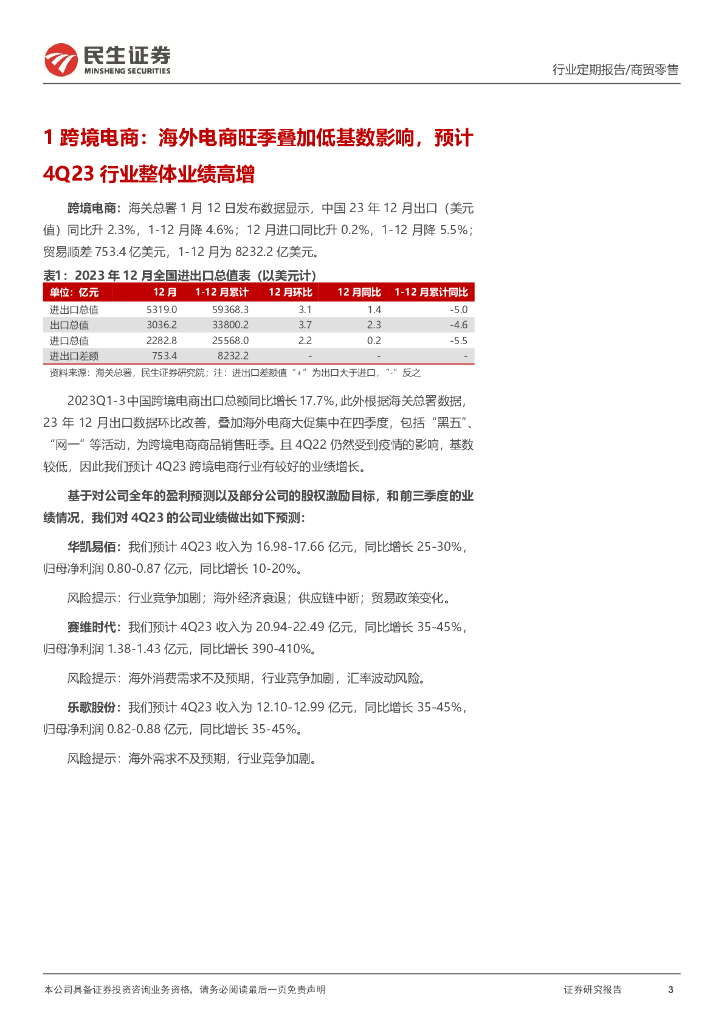 民生证券:商贸零售板块4Q23业绩前瞻:电商零售板块低基数下业绩快速恢复,寻找美护黄金珠宝板块业绩超预期标的.pdf