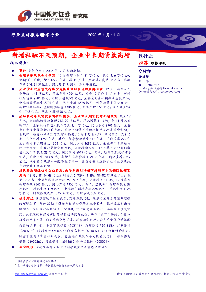 中国银河:银行业:新增社融不及预期,企业中长期贷款高增.pdf