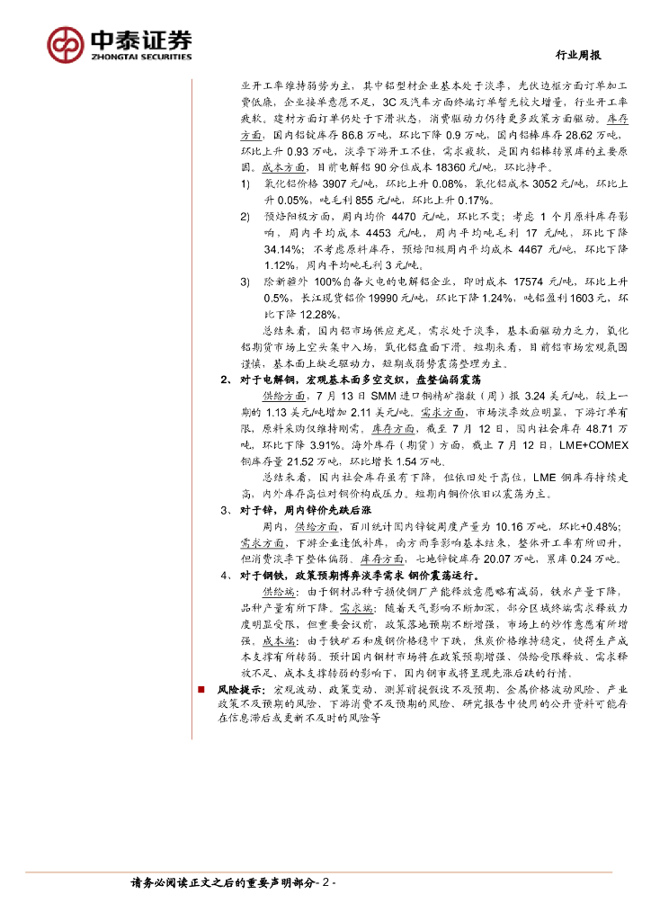 中泰证券:有色金属行业周报:美联储九月降息窗口有望打开,板块具备持续上行动能.pdf