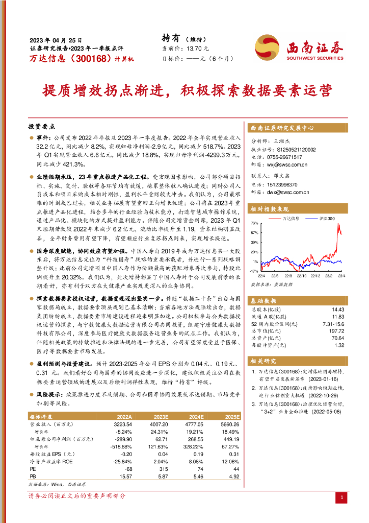 西南证券:万达信息(300168)-提质增效拐点渐进,积极探索数据要素运营.pdf
