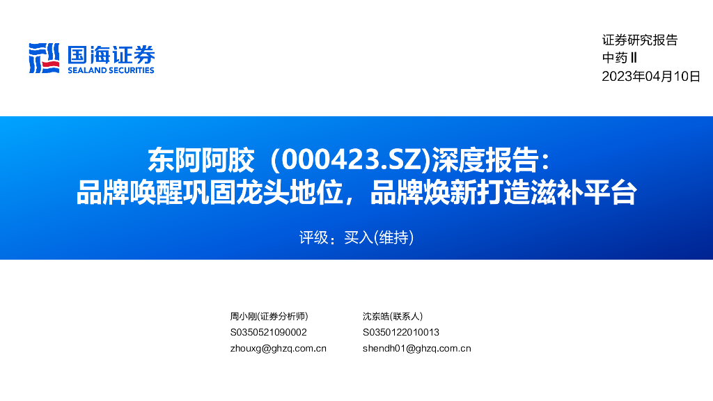 国海证券:东阿阿胶(000423)-深度报告:品牌唤醒巩固龙头地位,品牌焕新打造滋补平台.pdf