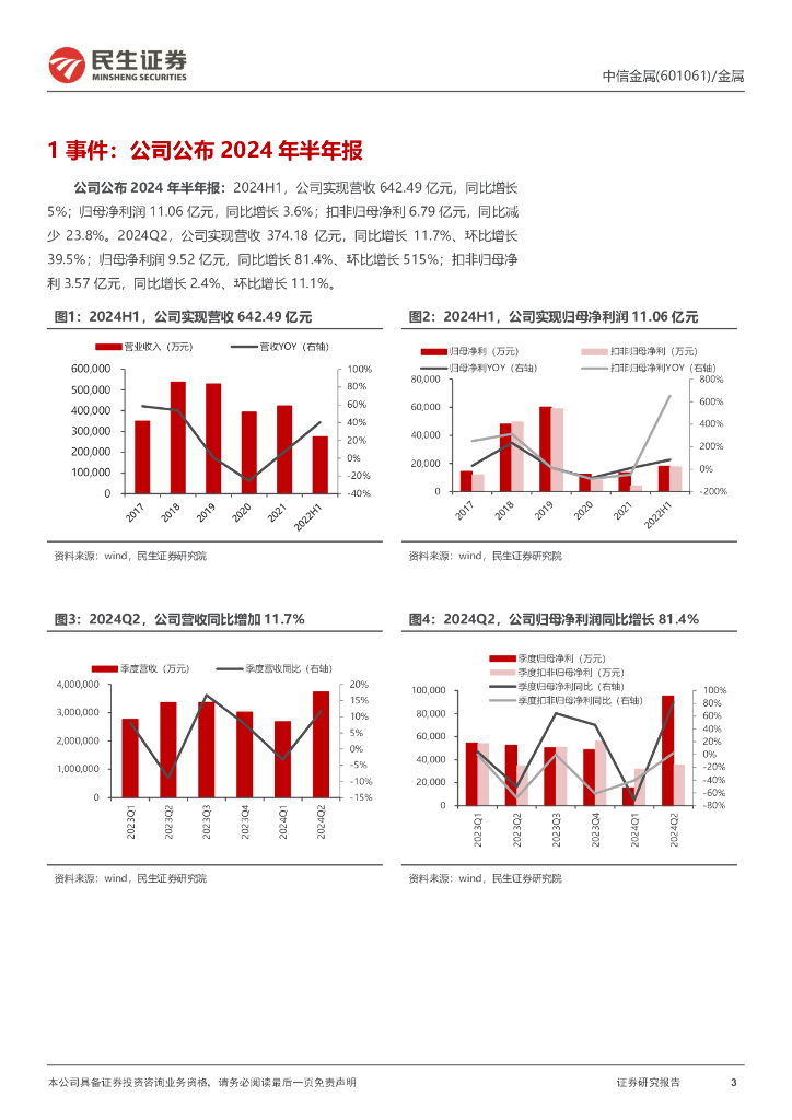 民生证券:中信金属(601061)-2024年半年报点评:贸易+投资双轮驱动,矿权价值有待重估.pdf