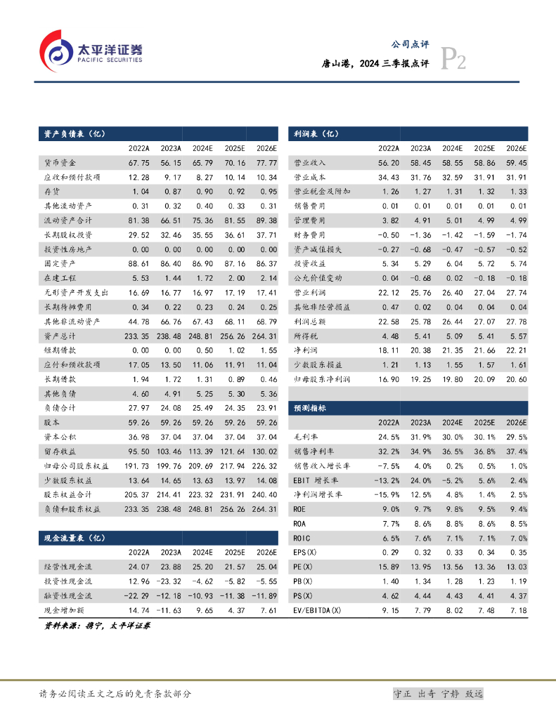 太平洋证券:唐山港,2024三季报点评,Q3遇周期压力,静待调整结束.pdf