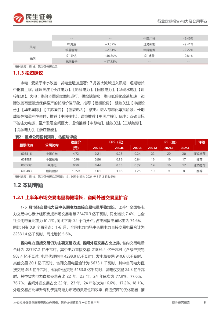 民生证券:电力及公用事业行业周报(24WK31):上半年用电需求快速扩张,电力交易平稳增长.pdf