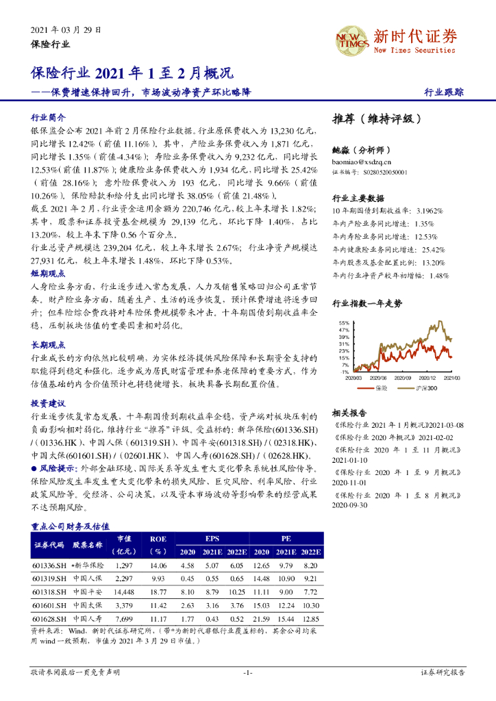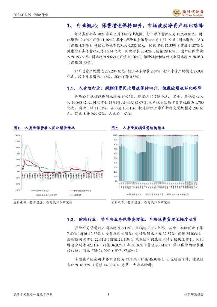 新时代证券:保险行业2021年1至2月概况:保费增速保持回升,市场波动净资产环比略降.pdf